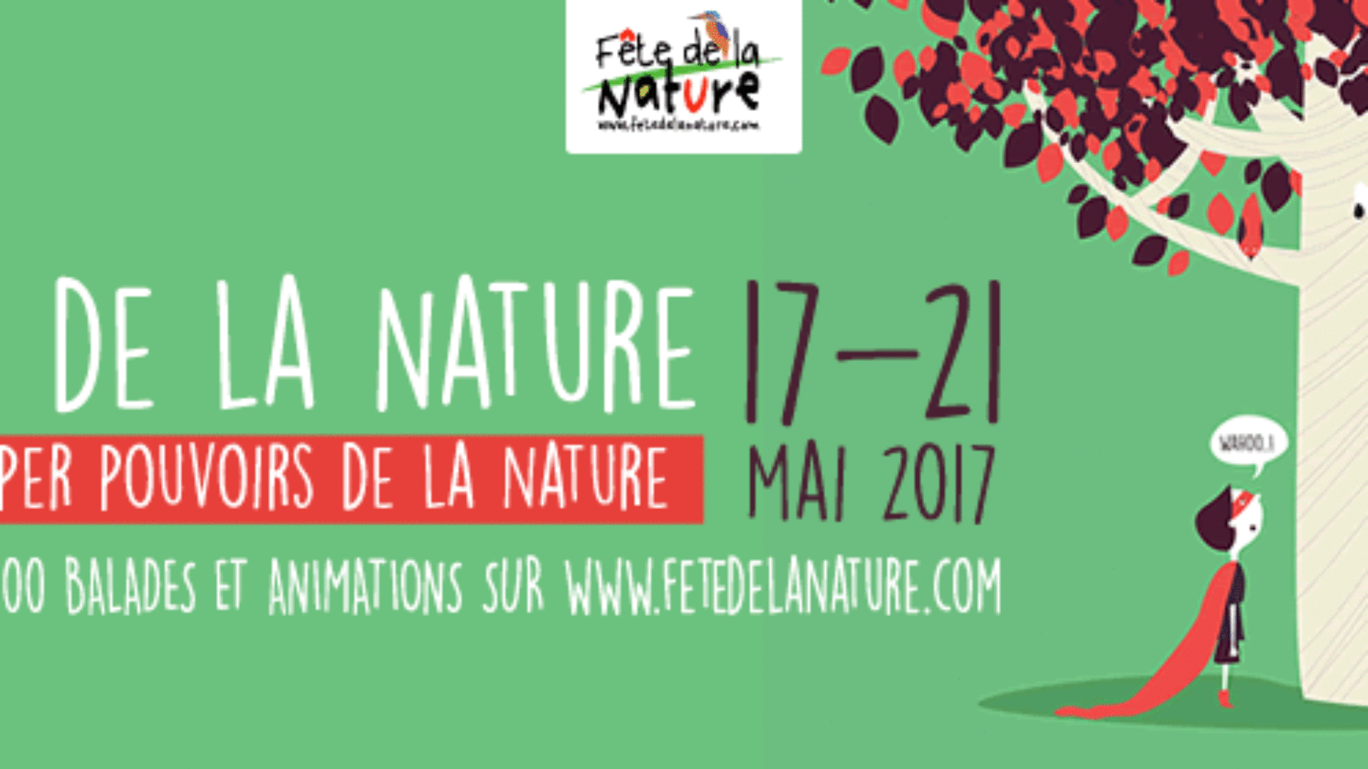 La Fête de la Nature aura lieu du 17 au 21 mai 2017 partout en France. Au programme, 5 jours de manifestations gratuites au contact direct de la nature, pour permettre à tous les publics de la (re)découvrir à travers la thématique "Les super-pouvoirs de la nature" !