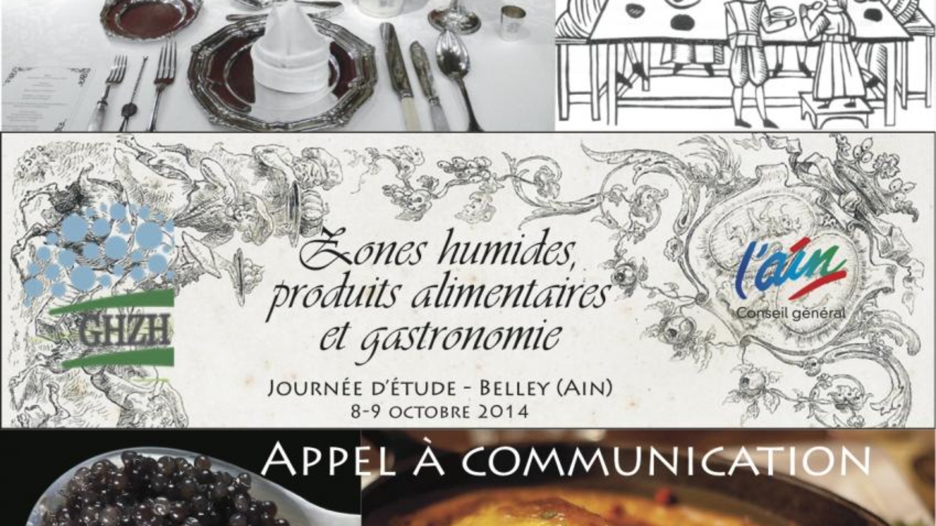 Le Groupe d’Histoire des Zones Humides consacrera sa neuvième journée d’étude aux produits alimentaires des zones humides et à la gastronomie. La réunion aura lieu à Belley (Ain) les 8 et 9 octobre 2014.