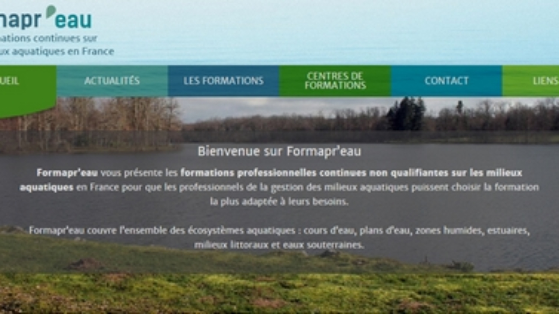 Formapr'eau est un portail web novateur qui référence l’ensemble des formations professionnelles continues courtes, dans le domaine des milieux aquatiques en France. Simple et rapide d’utilisation, il s’adresse aux professionnels de la gestion des milieux aquatiques désireux de se former. Grâce à ce nouvel outil, ils peuvent maintenant accéder à un large choix de formations relatif :