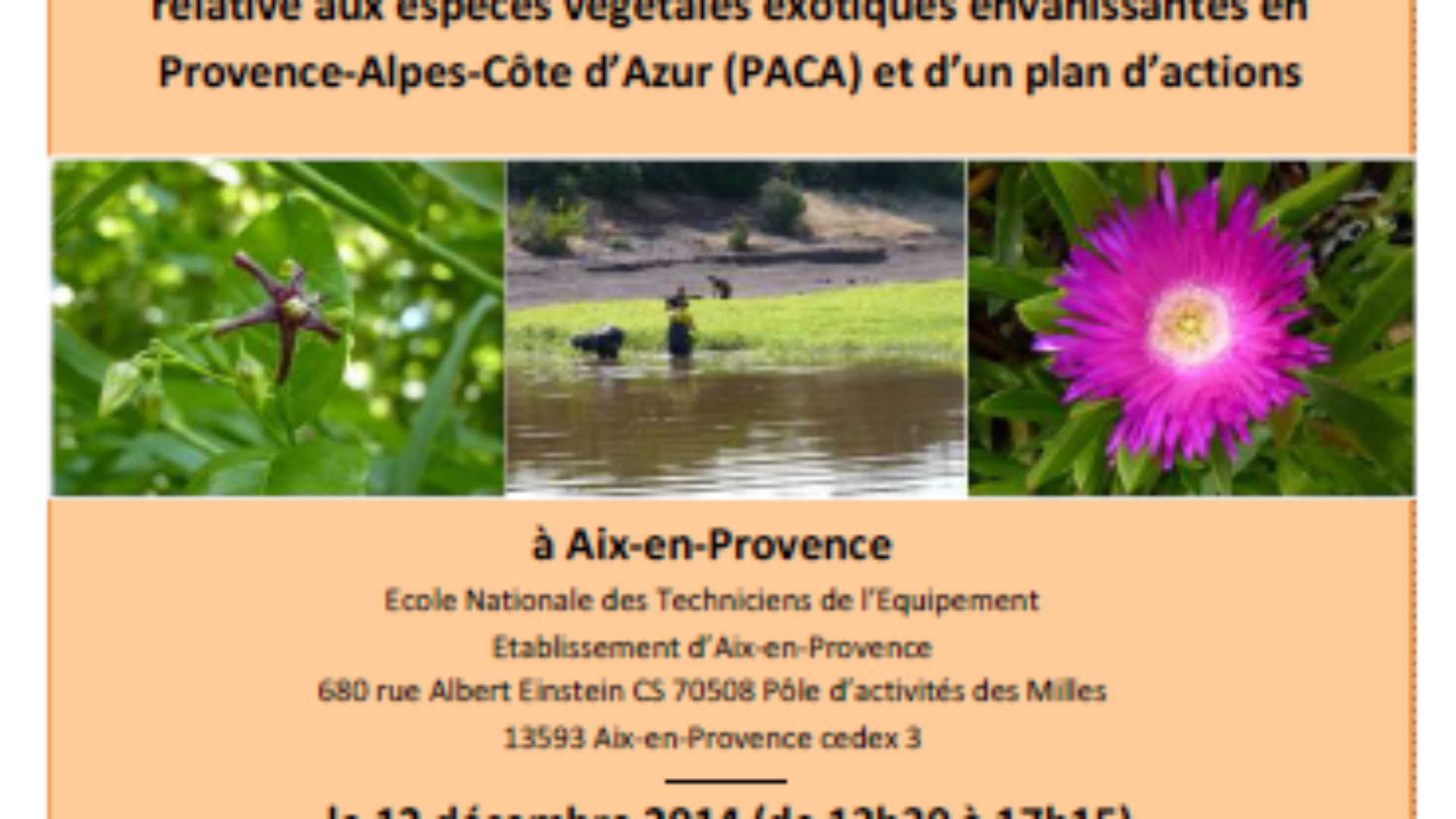 Les Conservatoires botaniques nationaux alpin et méditerranéen de Porquerolles, la Direction régionale de l’environnement et de l’aménagement de la région PACA (DREAL PACA) et le Conseil régional PACA ont le plaisir de vous convier à la réunion de restitution du programme « Stratégie régionale relative aux espèces végétales exotiques envahissantes en Provence-Alpes-Côte d’Azur »le vendredi 12 décembre 2014 à Aix-en-Provence
