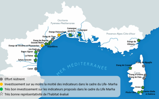 Dans le cadre du projet Life Marha, le PRLM s’est donné pour objectif d’accompagner les gestionnaires et animateurs de sites Natura 2000 dans l’évaluation de l’état de conservation de ces écosystèmes, en appliquant la méthode nationale fondée sur 12 indicateurs, sur les sites Natura 2000 concernés. Ceci afin d’harmoniser les pratiques, renforcer la robustesse des suivis et améliorer la connaissance des lagunes à l’échelle de la façade méditerranéenne.