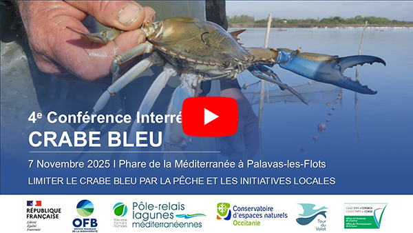 - Conférences interrégionales « Actions de connaissance et de gestion sur le Crabe bleu (Callinectes sapidus), animées et coordonnées à l’échelle de la façade méditerranéenne »
