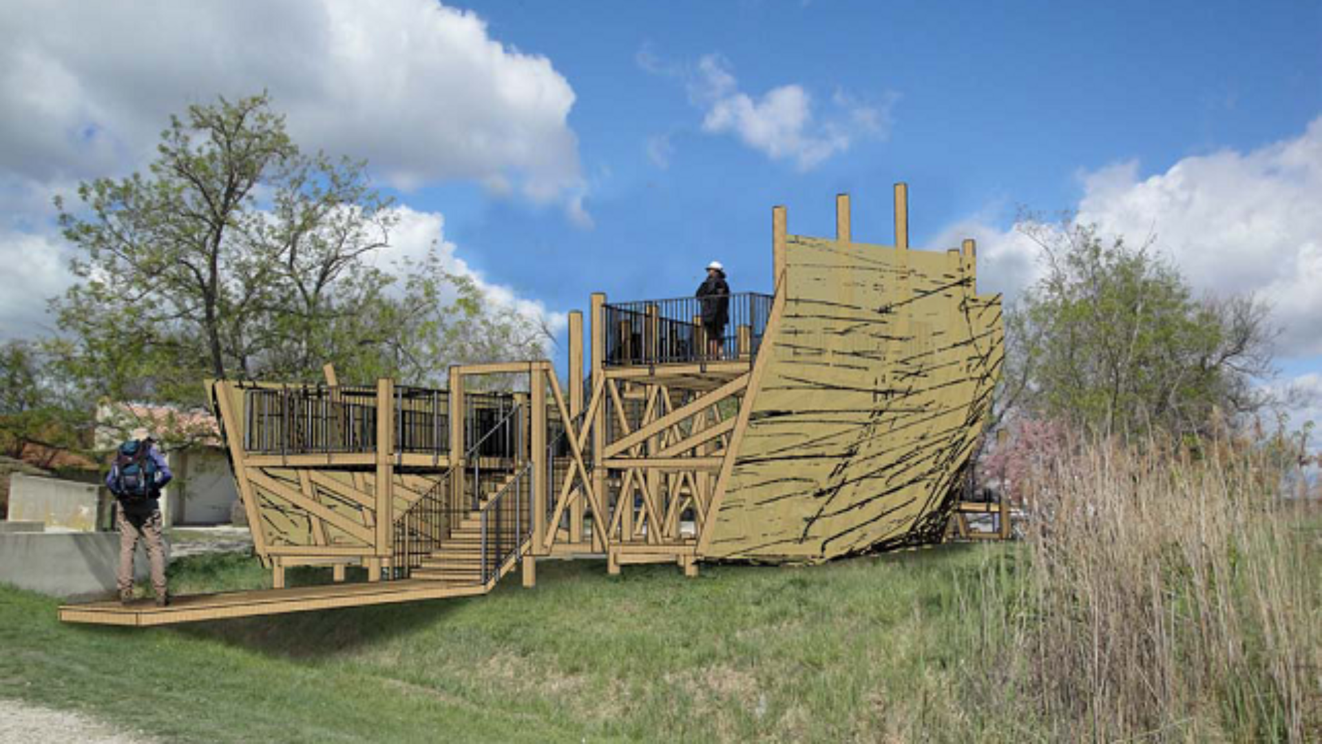 >> ci-contre : L’oeuvre Horizons qui sera installée au Musée de la Camargue, géré par la Parc naturel régional. Tadashi Kawamata a proposé une oeuvre dans laquelle le spectateur pénètre et circule. Il peut aussi bien la regarder de dehors que de l’intérieur, multiplier les points de vue.