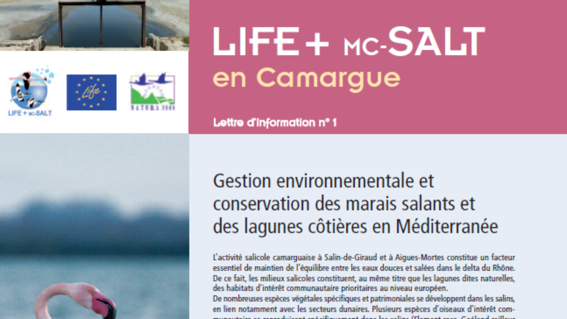 Ce premier numéro précise les objectifs de gestion et actions engagées sur les sites du LIFE+ MC SALT sur les anciens salins de Beauduc réalisées en partenariat technique par la Tour du Valat et le PNR de Camargue.