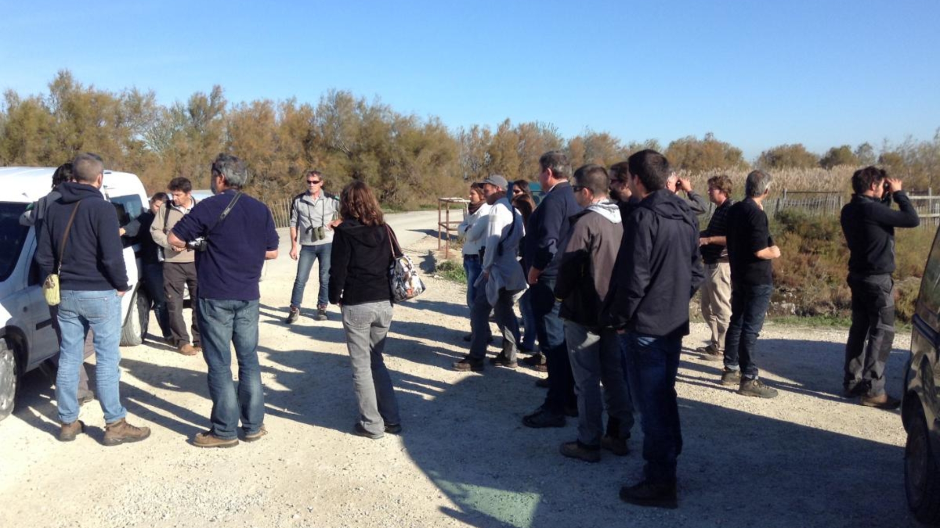 Photo: Rencontres annuelles 2015 des contributeurs de l’OPNL, visite des « Etangs et marais des salins de Camargue », propriété du Conservatoire du Littoral (Crédit photo : Christophe Le Noc).