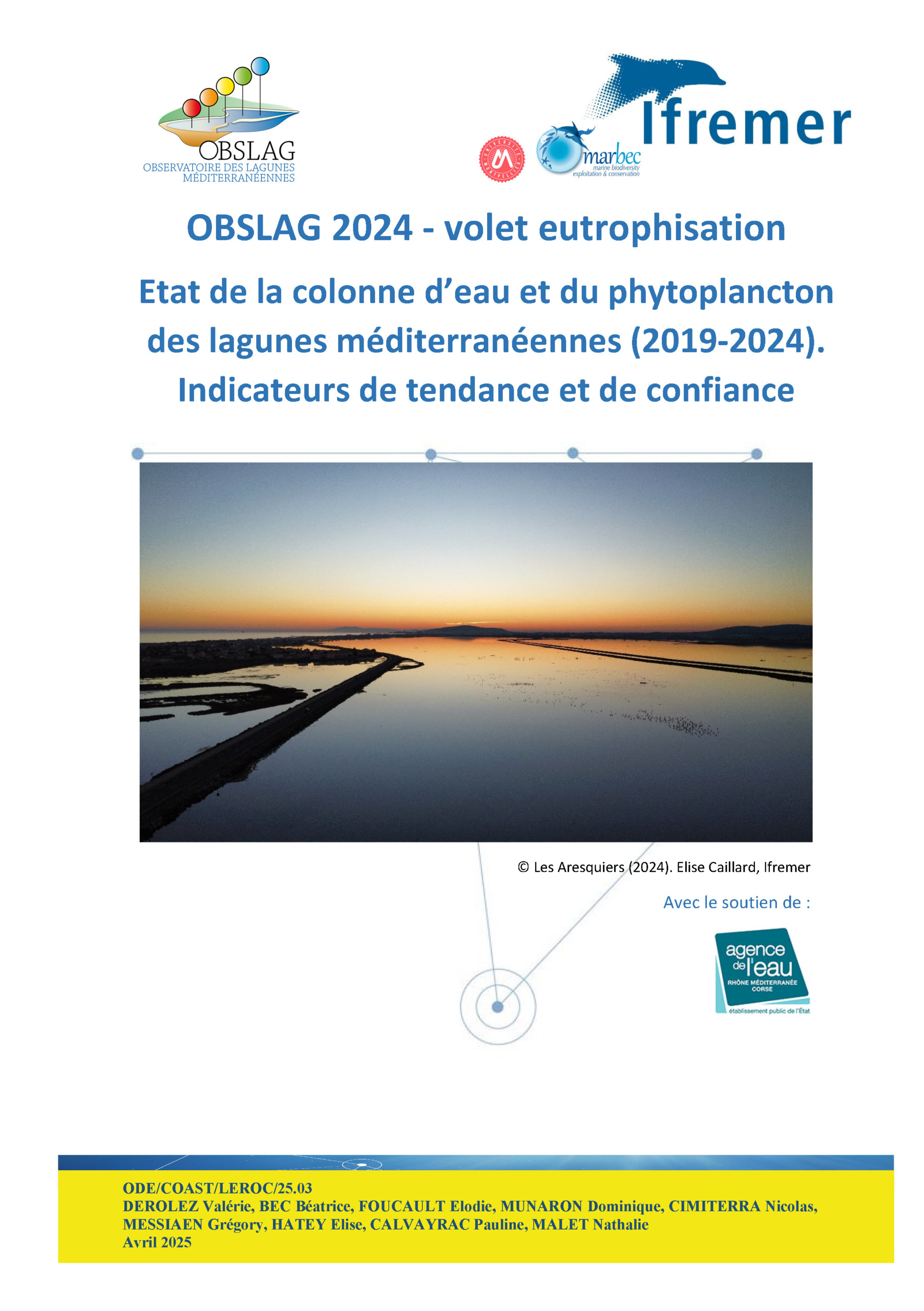 • OBSLAG 2024 ‐ volet eutrophisation. État de la colonne d’eau et du phytoplancton des lagunes méditerranéennes (2019‐2024). Indicateurs de tendance et de confiance