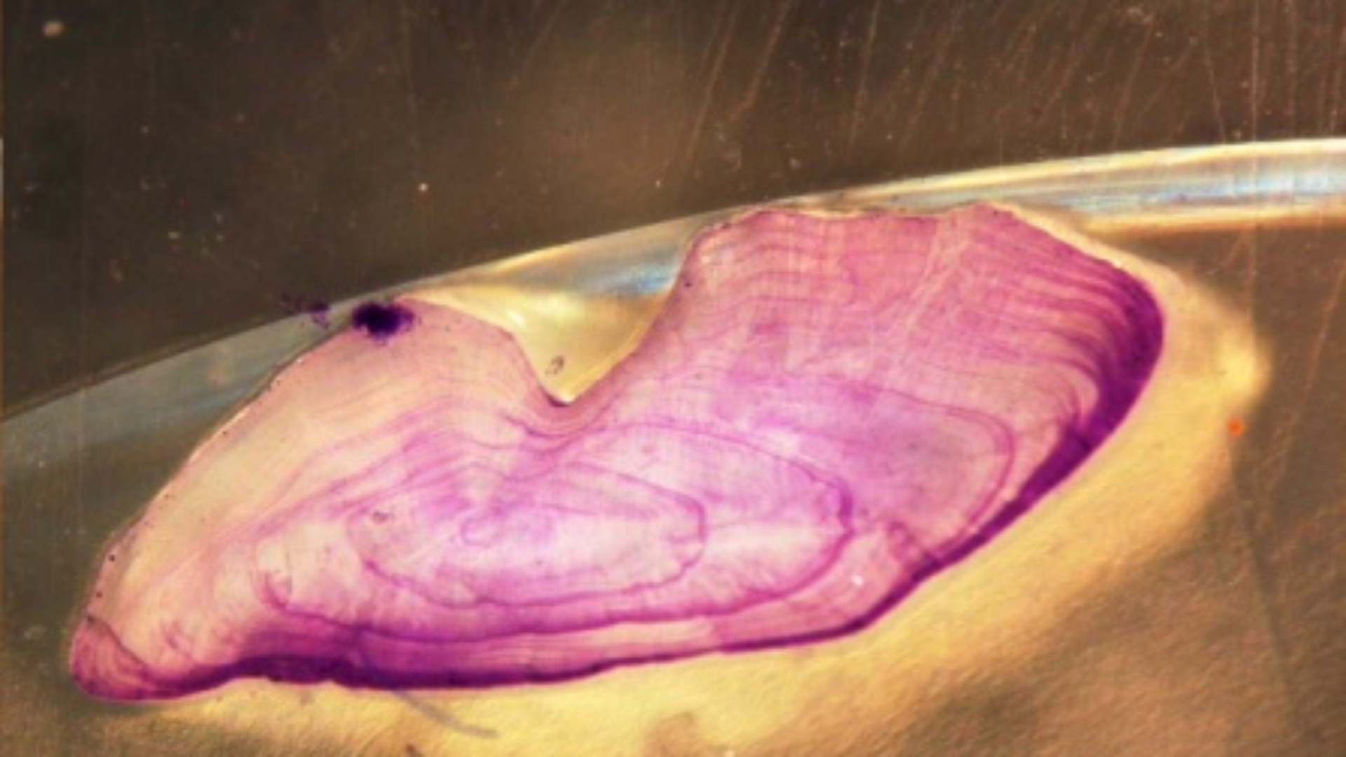 >>Otolithe d’une anguille de 746 mm introduite en 2007 et reprise en mars 2015 âgée de 94 mois.