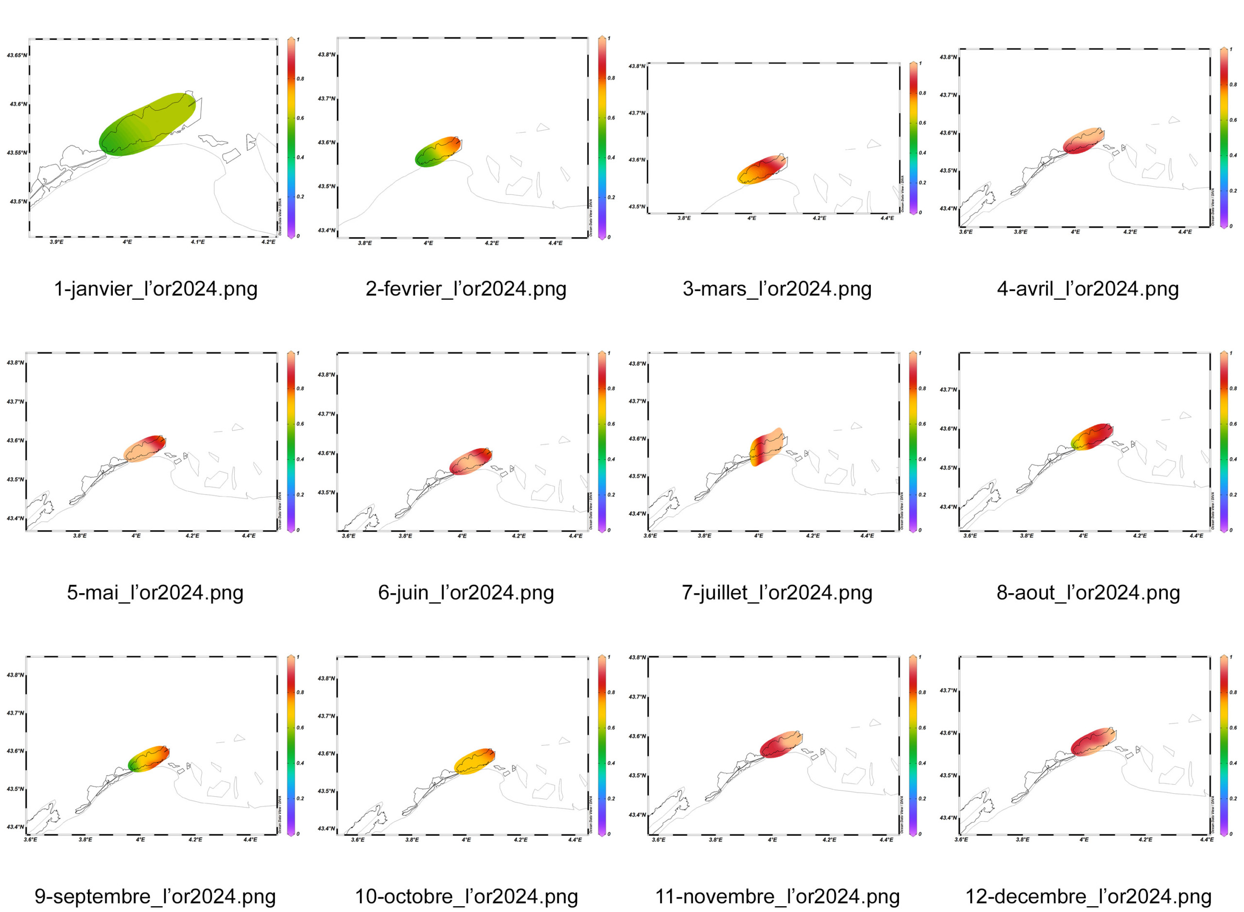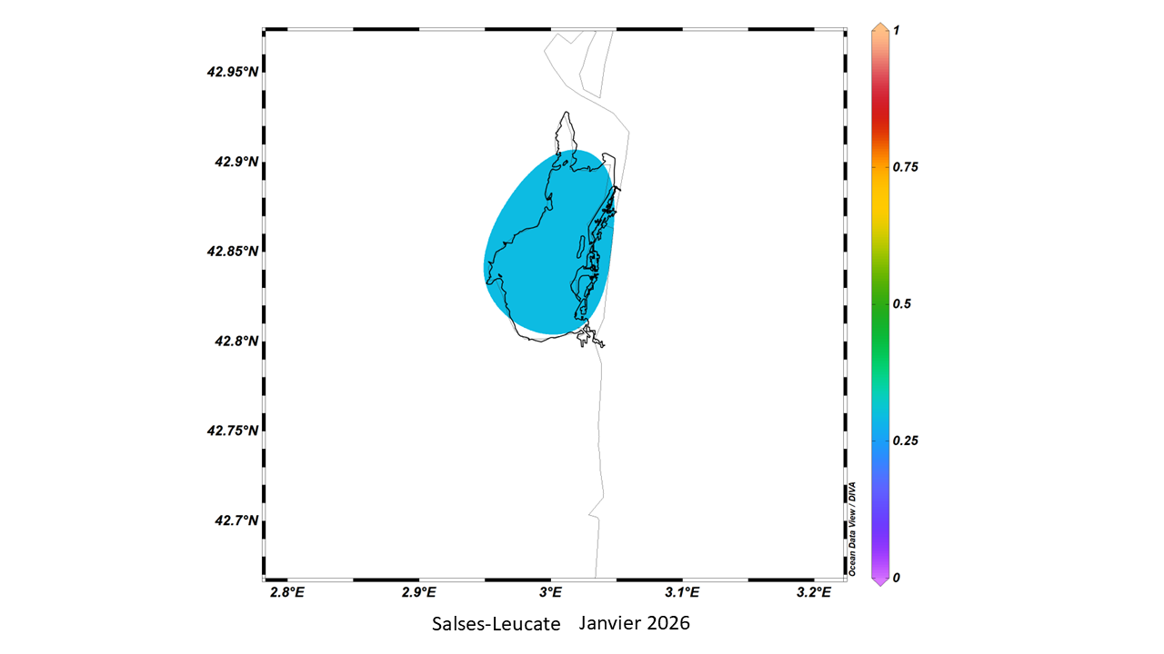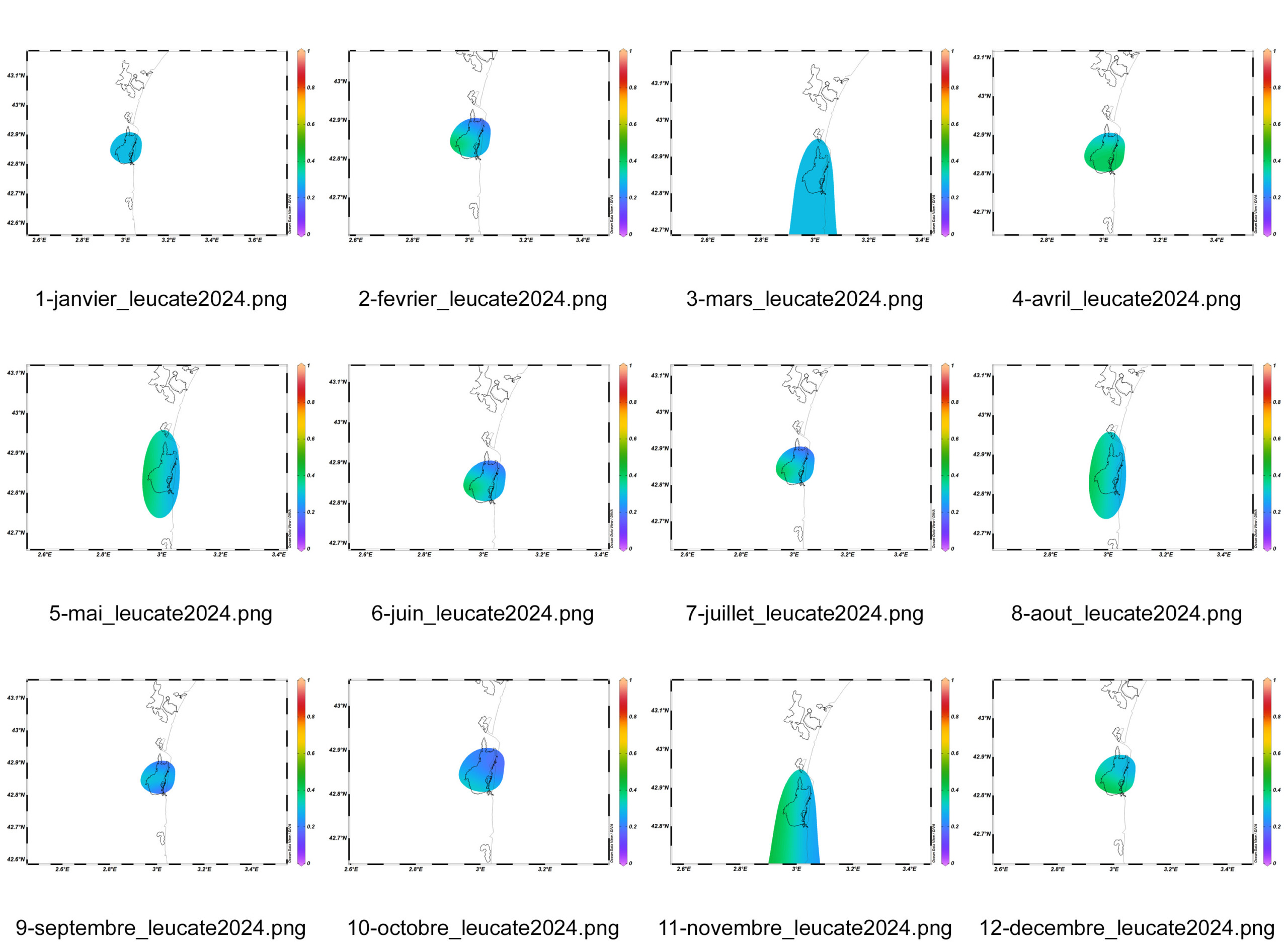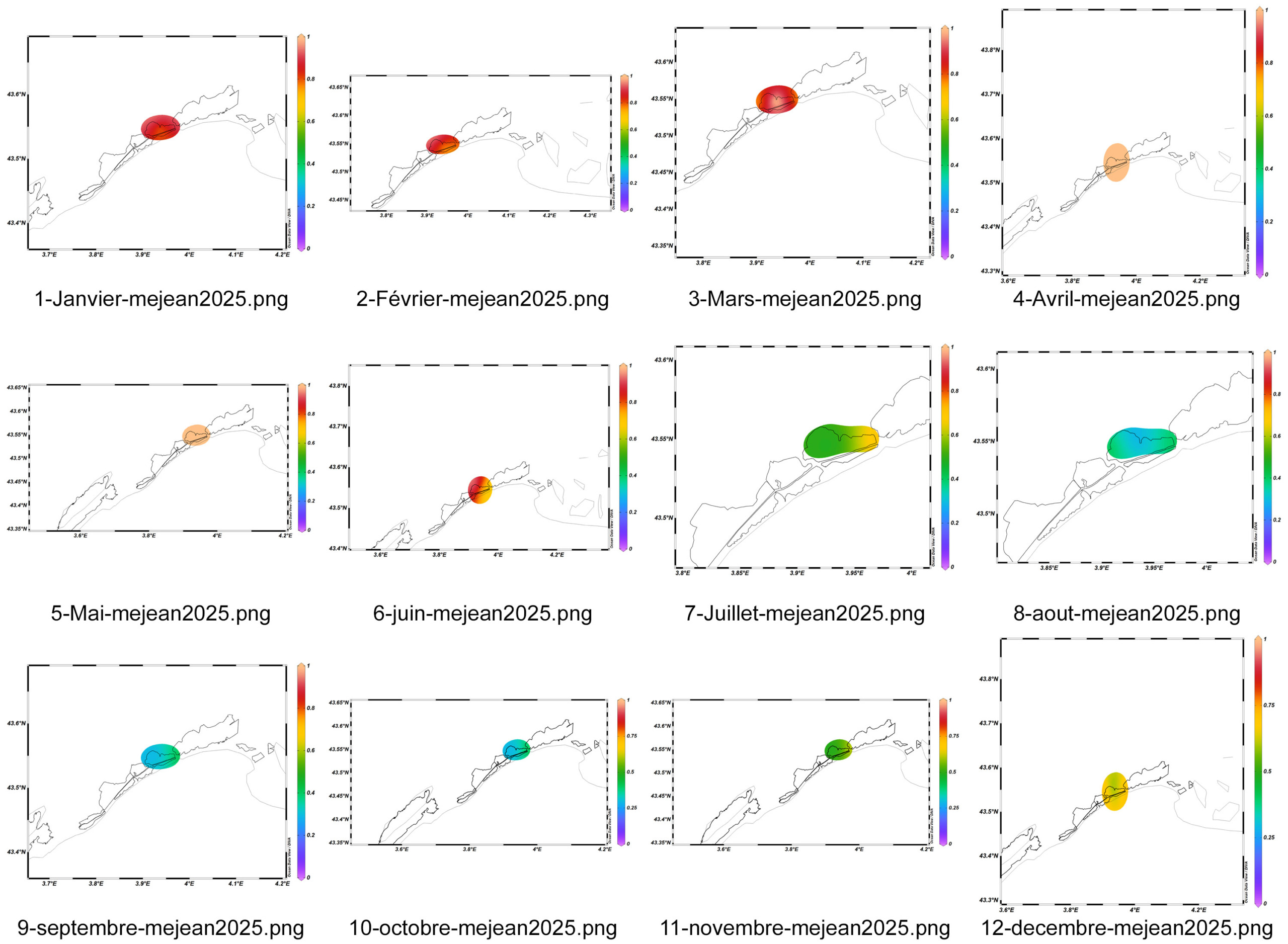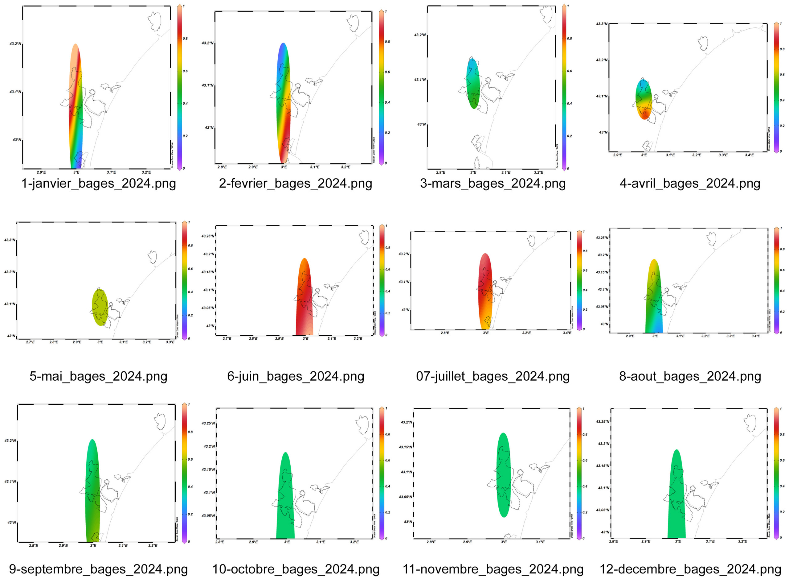 Pour la 1ère année du projet le CRPMEM Occitanie s’est appuyé sur l’outil cartographique mis en disposition par Marchessaux et al. qui permet de visualiser l’indice de tolérance haline du crabe bleu (Salinity Habitat Suitability Index) à la fois mensuellement et à l’échelle des différentes lagunes d’Occitanie. Les données employées dans le modèle sont celles issues du suivi physico-chimique mensuel des lagunes (FILMED) ou d’autres suivis complémentaires par les gestionnaires des lagunes.
