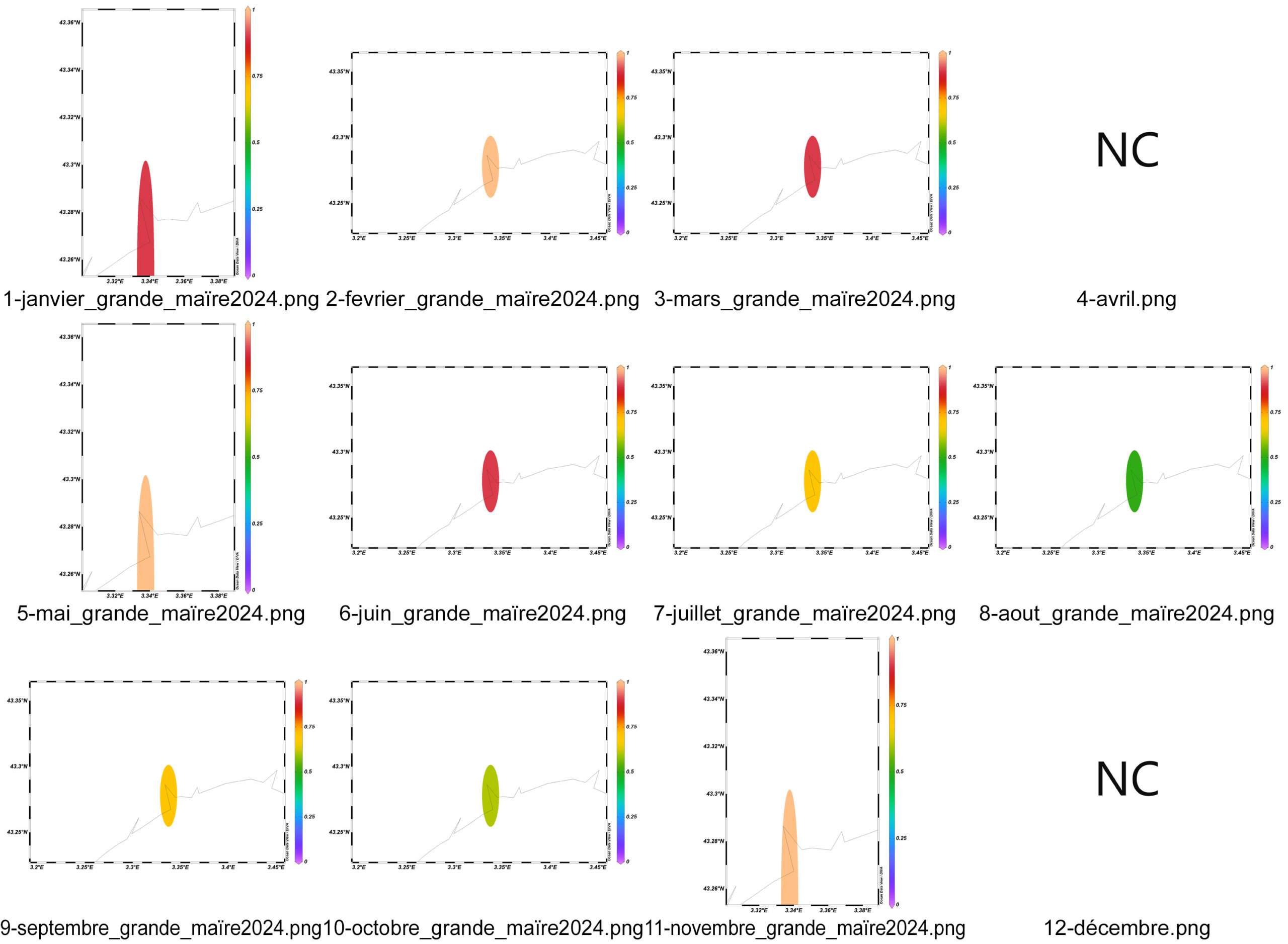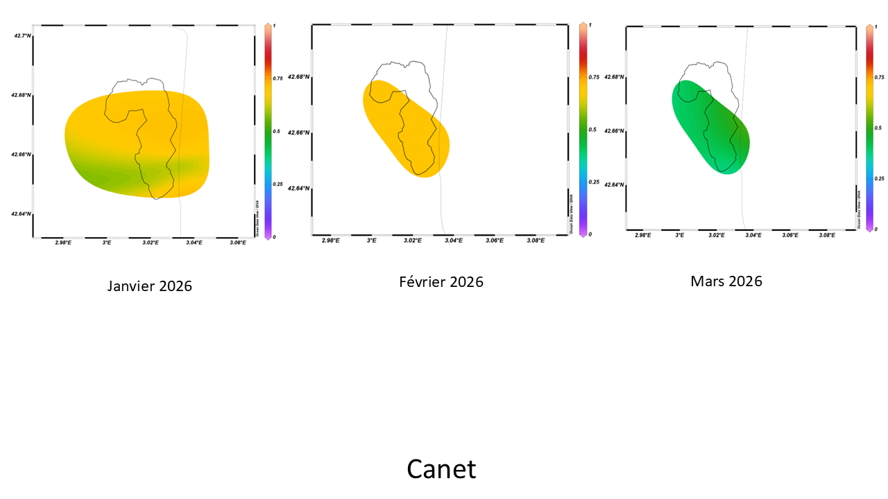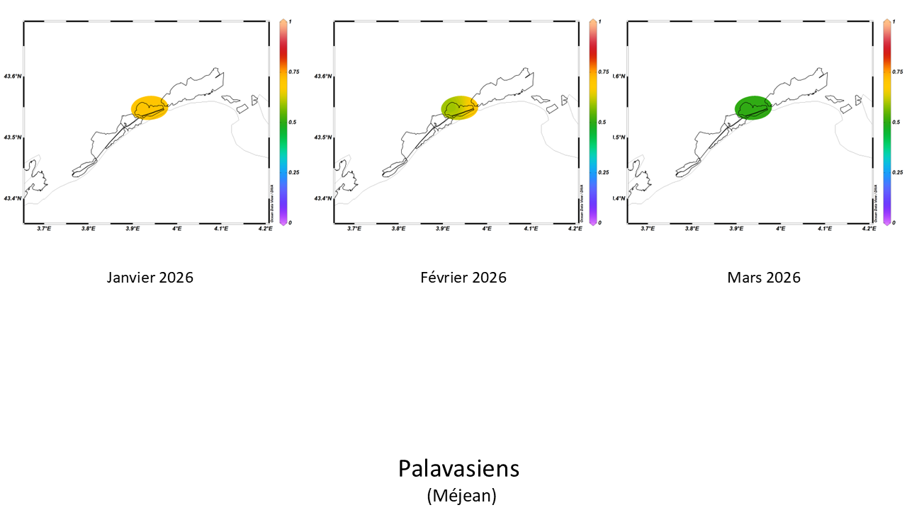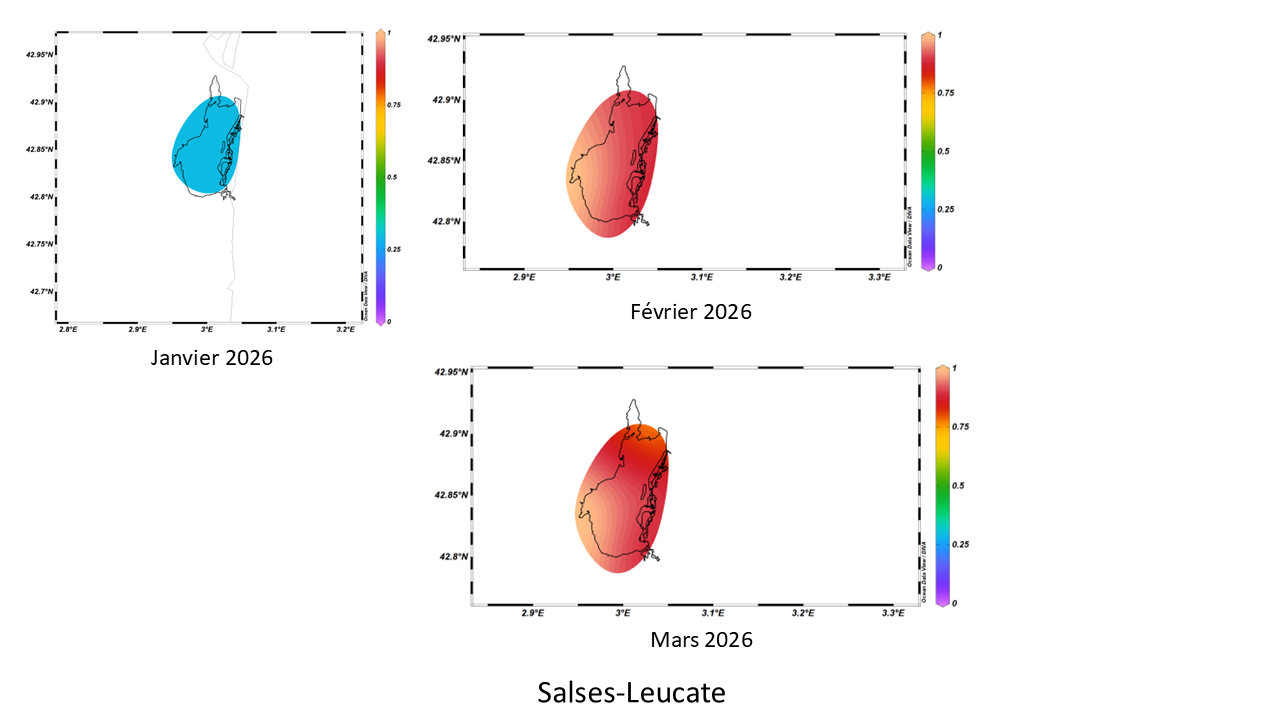 Mensuellement, le CRPMEM Occitanie diffuse un bulletin au comité technique du projet pour le tenir informé des lagunes les plus favorables au crabe bleu selon le Salinity Habitat Suitability Index.