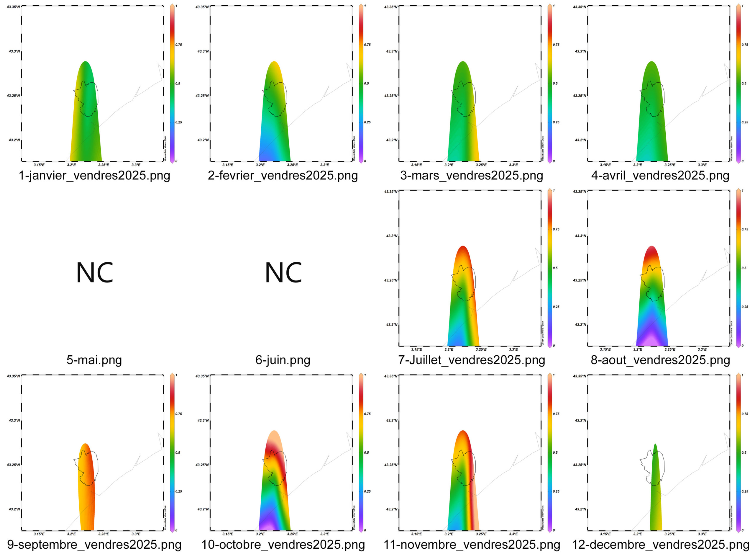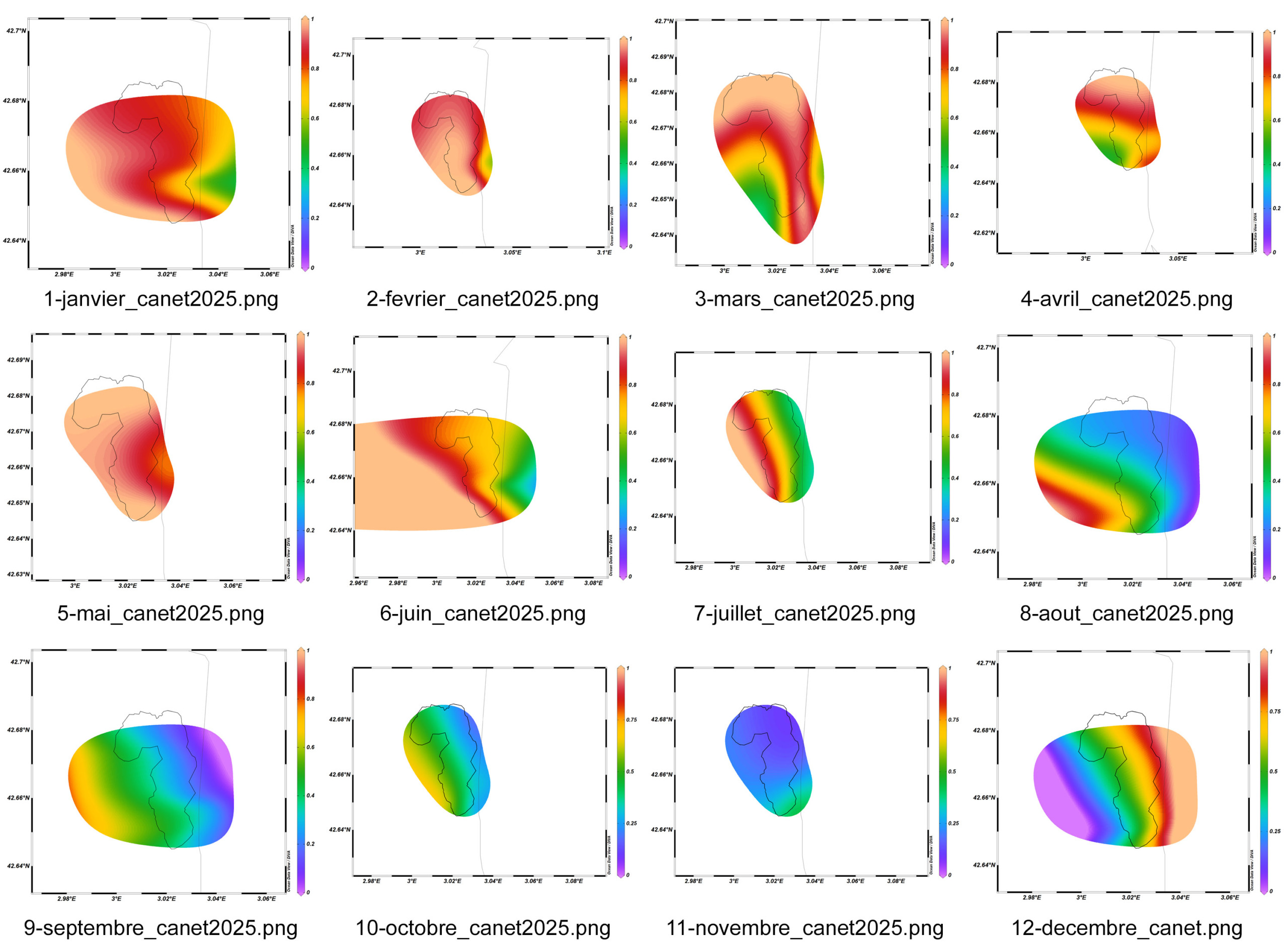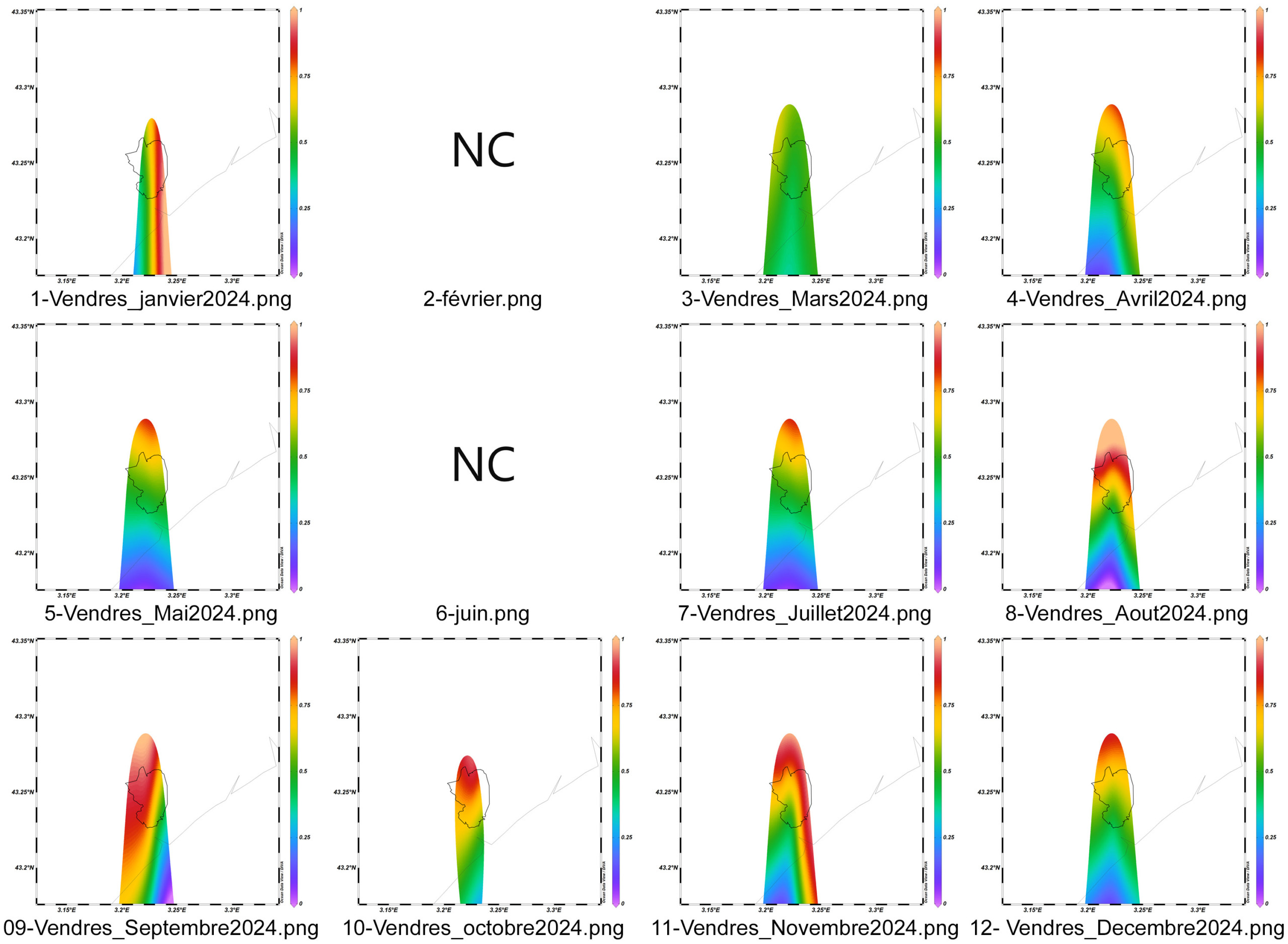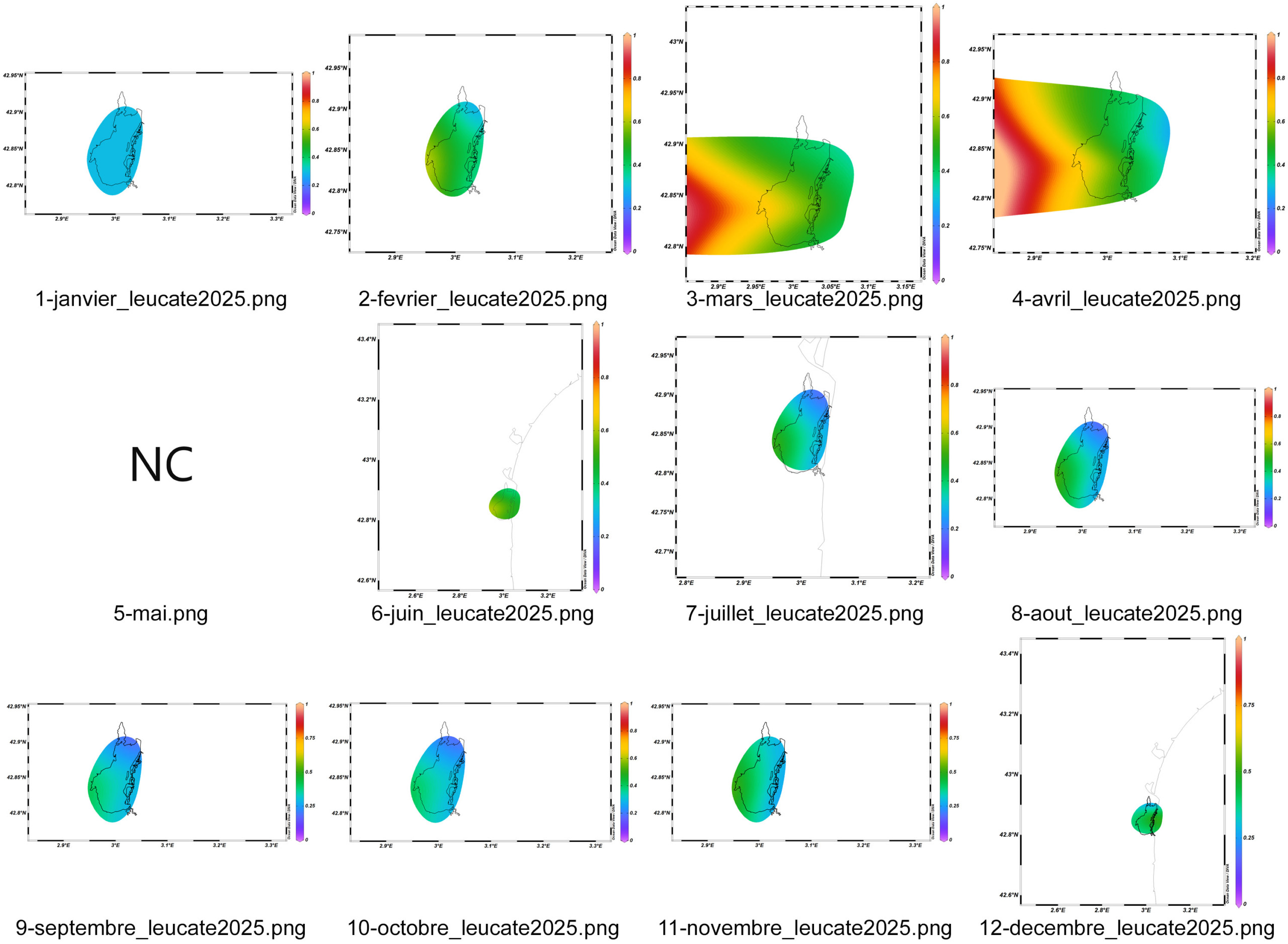 Mensuellement, le CRPMEM Occitanie diffuse un bulletin au comité technique du projet pour le tenir informé des lagunes les plus favorables au crabe bleu selon le Salinity Habitat Suitability Index.