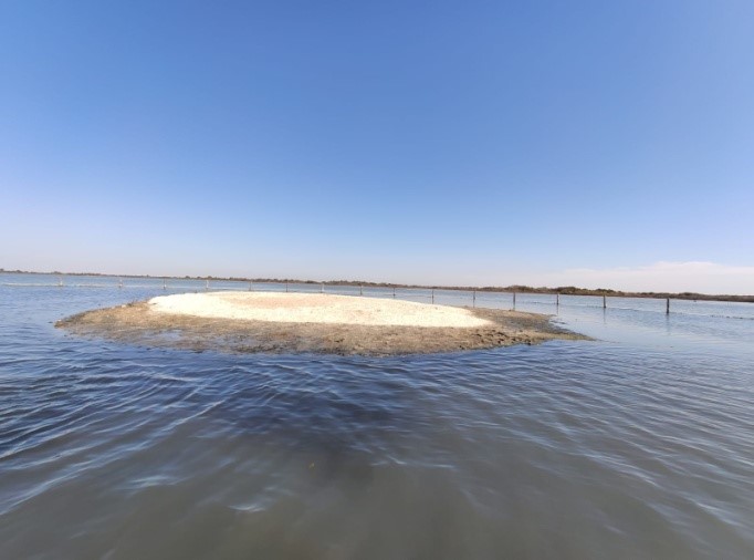 Entre 2018 et 2021, ce sont une douzaine d’aménagements (ilots, radeaux, plateforme) répartis sur 4 sites Natura 2000 des Bouches-du-Rhône et du Gard : « Camargue », « Marais entre Crau et Grand Rhône », « Etangs entre Istres et Fos » et « Petite Camargue laguno marine » qui ont pu bénéficier de ce rechargement de près d’un total de 250 m3 de coquilles d’huitres broyées. Les laro-limicoles coloniaux sont des oiseaux qui nichent à même le sol sur des ilots peu végétalisés, à l’abri des prédateurs terrestres et du dérangement. Ces espèces patrimoniales telles que la Sterne naine, le Goéland railleur ou la Mouette mélanocéphale, sont devenues particulièrement vulnérables du fait de la raréfaction de leurs sites de reproduction causée par l’artificialisation du littoral, l’érosion ou encore la compétition avec le Goéland leucophée. Le programme LIFE + Envoll (2013-2018) porté par les Amis des Marais du Vigueirat a permis d’initier la création d’un réseau de sites de reproduction pour ces espèces à l’échelle de la façade méditerranéenne française. Encore aujourd’hui, ce contrat Natura 2000, accompagné de mesures de gestion hydraulique adaptées, du suivi du succès de reproduction et d’un entretien des aménagements restaurés, permet la conservation de ces oiseaux menacés sur les milieux littoraux camarguais.