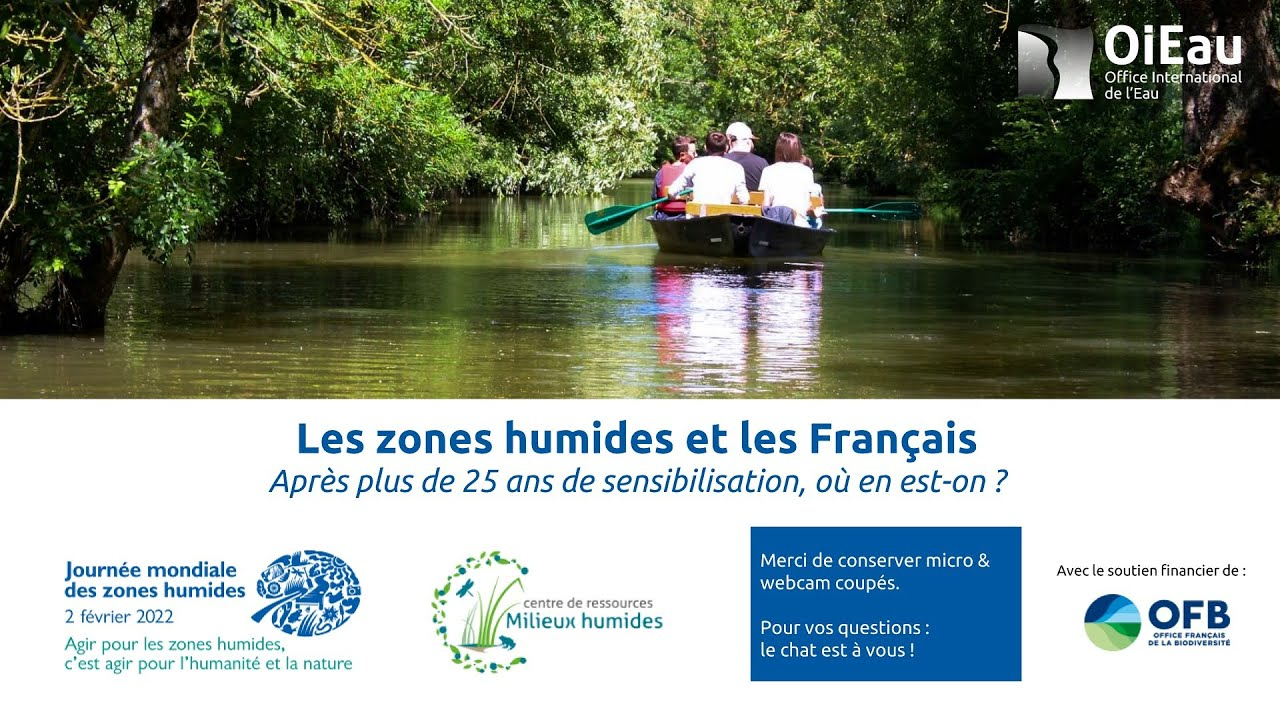 Dans le cadre du Centre de ressources « milieux humides », l’Office International de l’Eau a organisé avec le soutien financier de l’Office Français de la Biodiversité, une webconférence gratuite sur le sujet « Les zones humides et les Français – Après plus de 25 ans de sensibilisation, où en est-on ? », le 15 février 2022.