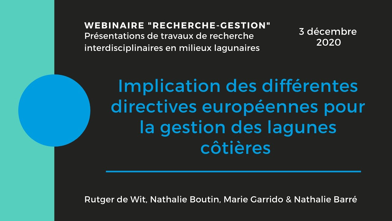 Le Pôle-relais lagunes méditerranéennes concourt à porter à connaissance des travaux de recherche et leurs acquis opérationnels, en particulier à destination des acteurs de la gestion des lagunes. Le webinaire qui s’est tenu le 3 décembre dernier visait à faire le lien entre des actions de recherche portées par différents organismes et laboratoires associés (UMR MARBEC-Ifremer-CNRS, CERGAM, Université d’Aix-Marseille, INRAE, CIRAD, LISAH, Institut Supérieur pour la Protection et la Recherche environnementale (ISPRA), CNRS, ARTDeV) et d’évoquer leurs attentes, notamment vis-à-vis du réseau de gestionnaires de milieux lagunaires. Au-delà de présenter des travaux de recherche, l’objectif de ces webinaires de la plateforme Recherche-Gestion du Pôle-relais lagunes est de favoriser l’échange d’information autour de projets actuels ou à venir, entre structures de gestion et structures de recherche.